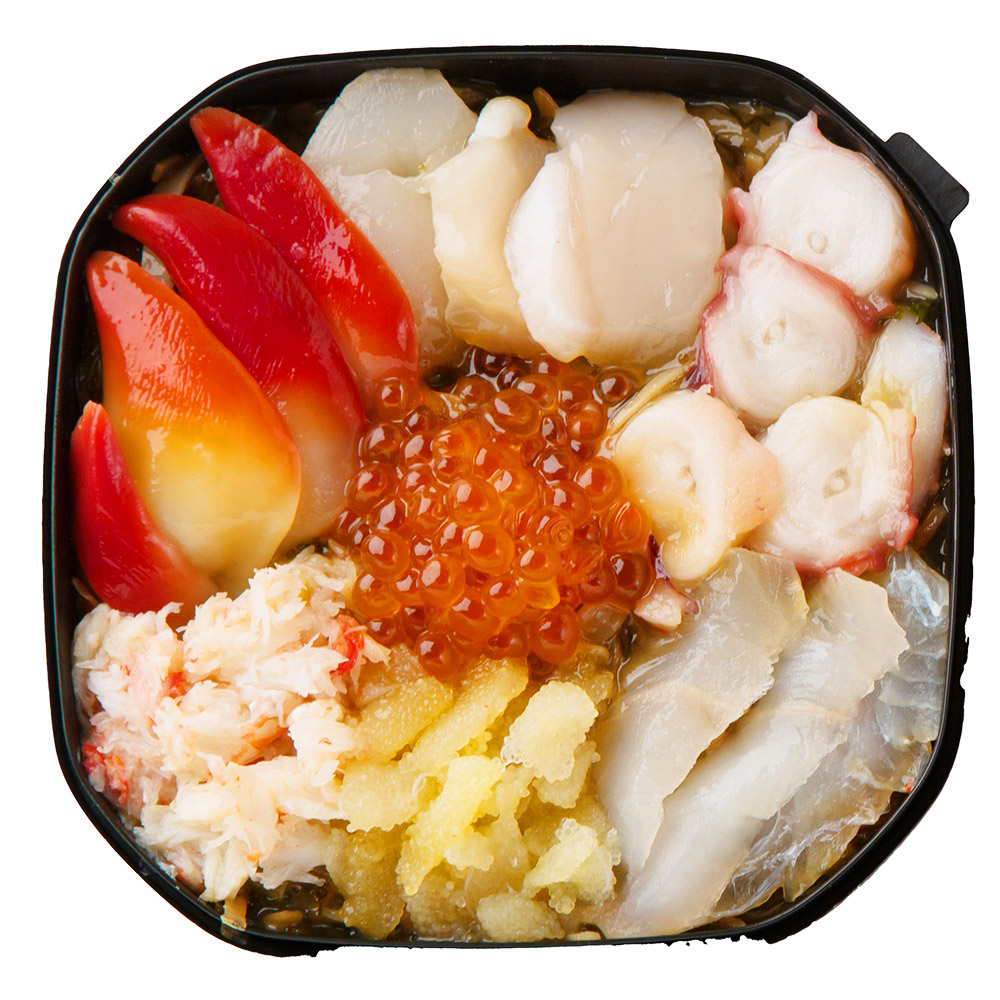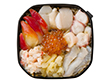 ■原材料名:松前漬(いか、醤油、砂糖、還元水飴、昆布、米発酵調味料、その他)(国内製造)、めかぶ、ほたて、味付け数の子、魚卵醤油漬(とび魚卵、数の子、醤油、みりん、その他)、いくら醤油漬、ホッキ貝、ずわいがに、ひらめ、調味たこ/酒精、調味料(アミノ酸等)、増粘多糖類、トレハロース、酸味料、ソルビトール、カラメル色素、保存料(ソルビン酸K)、甘味料(ステビア)、香料、着色料(黄5、黄4)(一部にいか・小麦・大豆・いくら・かに・乳成分を含む)