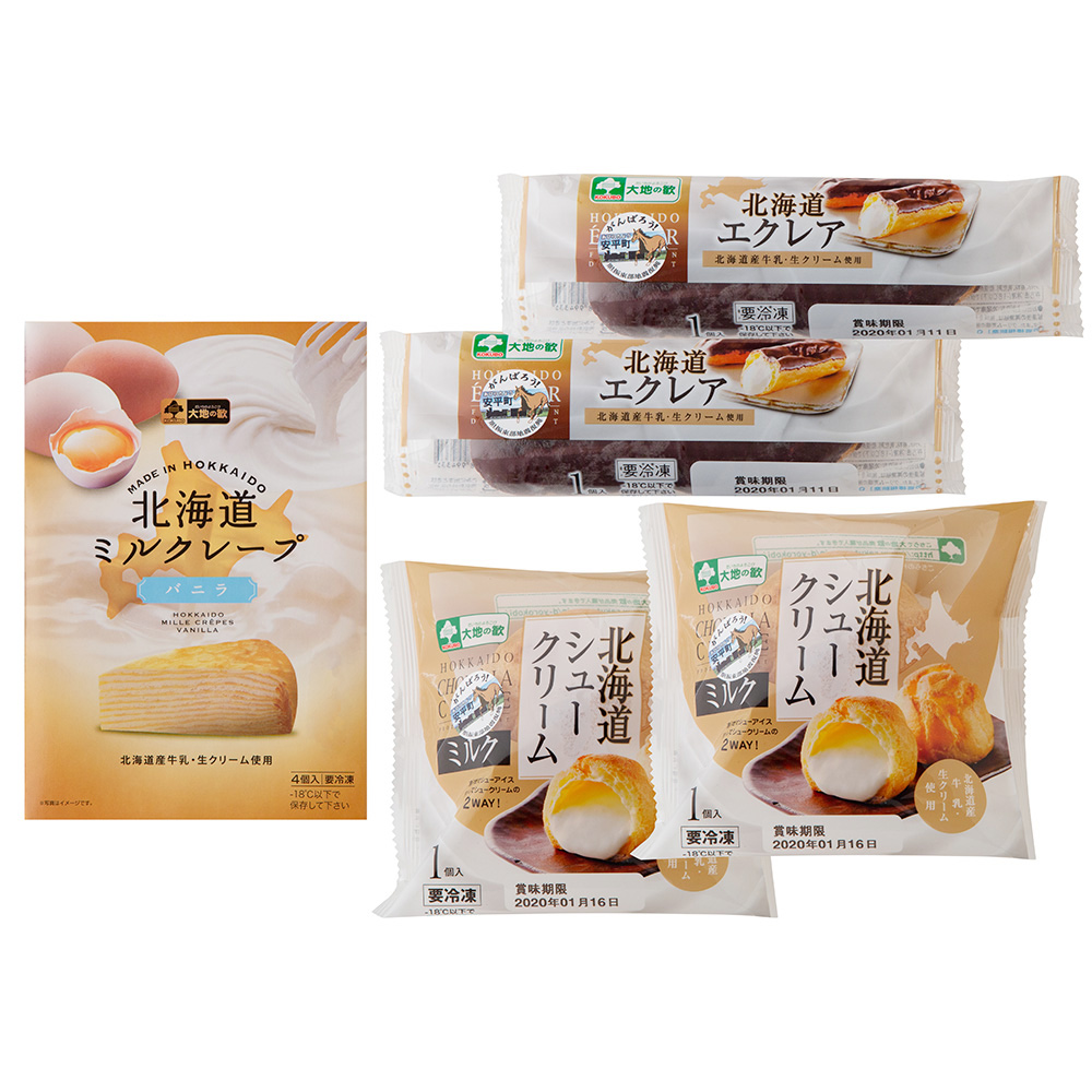 北海道スイーツ3種セット 洋菓子 ミルクレープ シュークリーム エクレア【送料込み】【二重包装不可】【お届け不可地域:沖縄・離島】の通販・お取り寄せ|わが街とくさんネット