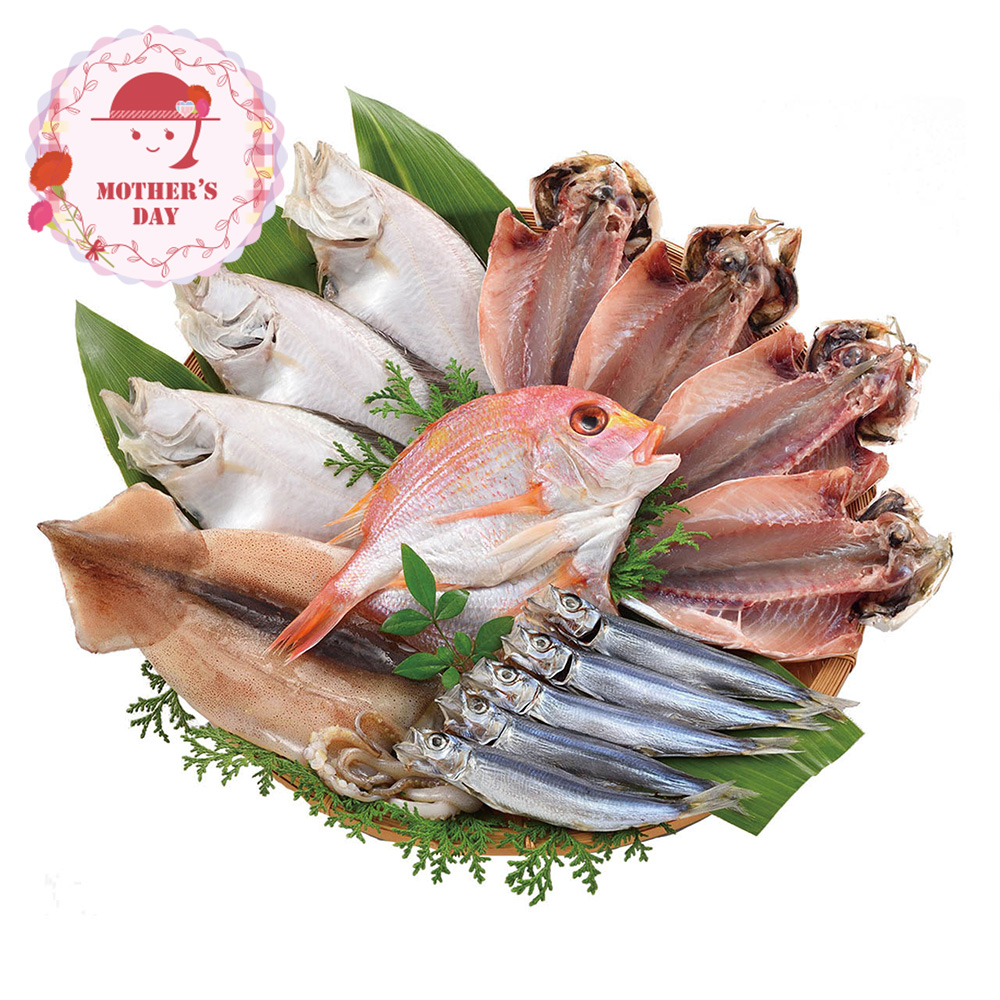 ■規格:あじ開き4枚、連子鯛開き1枚、かれい一汐3枚、するめいか開き1枚、うるめ丸干し5尾