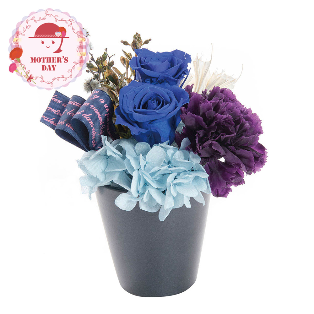プリザーブドフラワーは生花特有の美しさをそのままに保存加工した長く楽しめるお花。ローズとアジサイ、カーネーションの美しいグラデーションのデザイナーズアレンジで、お母様に笑顔を一緒にプレゼント!※入荷状況により花材が若干変更となる場合がございます。ひとつづつ丁寧に手作りさせていただきますので、若干の個体差が生じる場合がございます。