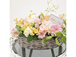 バイヤー厳選の鮮度抜群のお花をバスケットいっぱいにつめこみましたお花がこぼれ出るようなデザインです