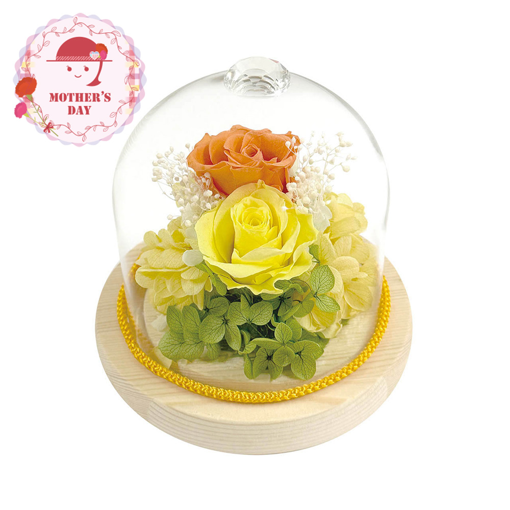 ラグジュアリーなガラスカットを冠に付けたガラスドームは見た目に高級感があるだけでなく保護性能も高いため、プリザーブドフラワーをさらに長期間お花を美しい状態に保つことが可能です。
