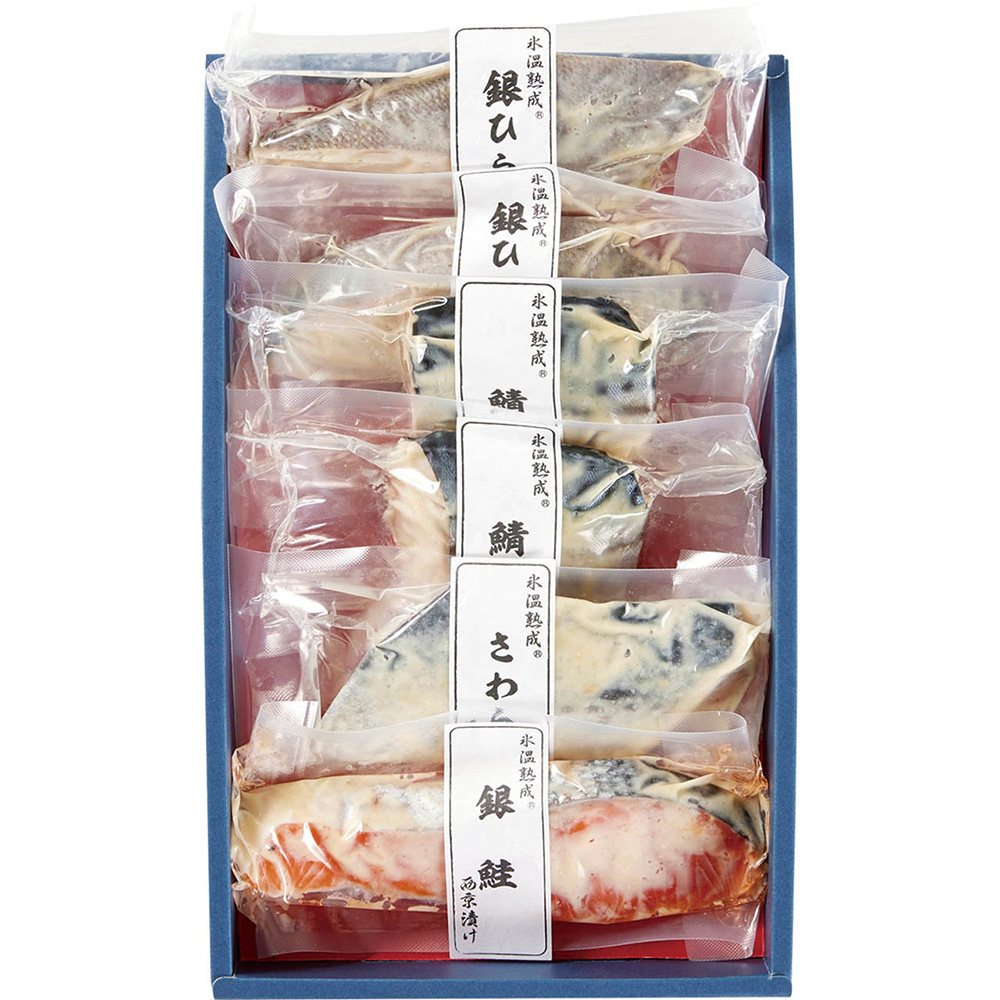 【母の日限定包装でお届けします】0℃以下、氷結点までの温度帯で加工・熟成する山陰・鳥取発祥の技術『氷温熟成法』によって魚の鮮度を損なう事無く旨みを引き出しました。特製の味噌床と『氷温熟成』製法で素材の旨みを引き出した西京漬けのギフトセット。柔らかな身から溢れ出す魚の旨みと、身の隅々まで染み渡った上品な味噌の味の重なりを是非ご賞味下さい。