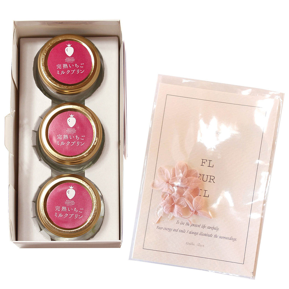 ■規格:完熟いちごミルクプリン3個(約80g/個)、グリーティングカードA5