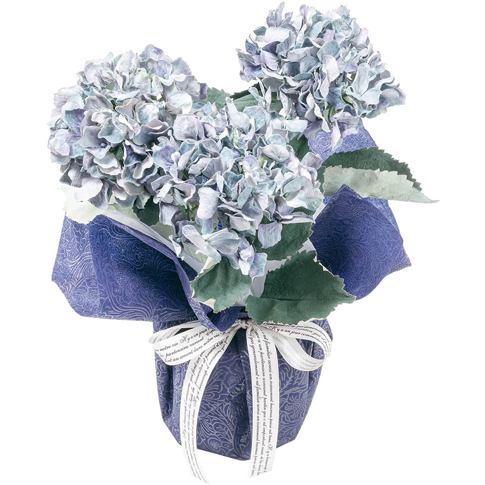 豪華で立派な紫陽花(アジサイ)。水やり不要でお手入れ簡単なので受け取られた方もストレスフリー。空気をきれいにすると言われるSC触媒加工済です。 注意事項 鉢のラッピングは商品の一部となります。商品到着後、鉢のラッピングは外さずにご鑑賞ください。