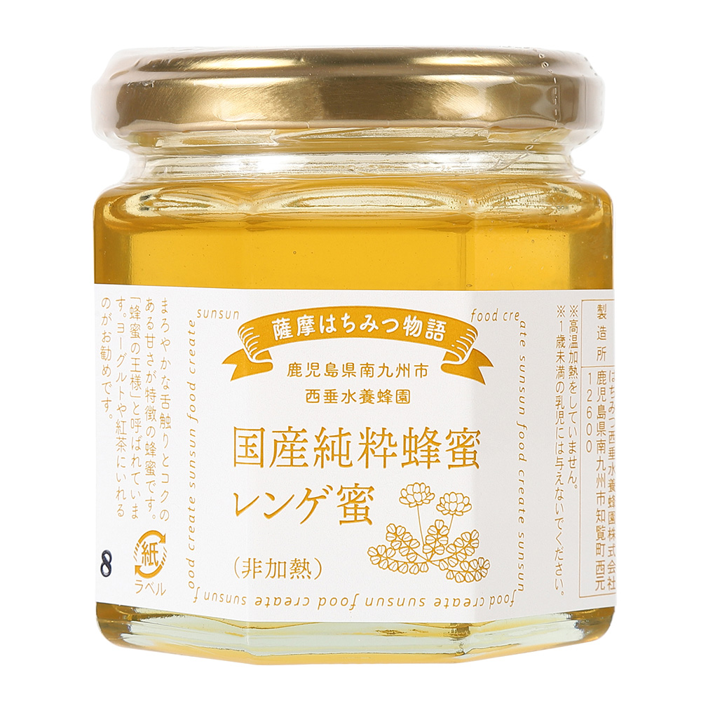まろやかな舌触りとコクのある甘さが特徴の純粋国産、非加熱のれんげ蜜。はちみつの王様と呼ばれている蜂蜜です。
