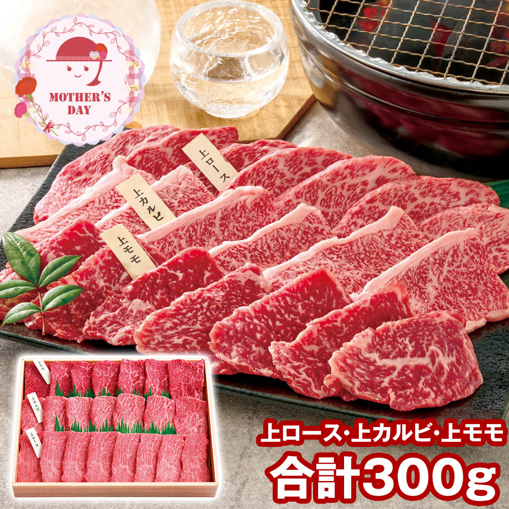 ■規格:上ロース・上カルビ・上モモ合計300g(宮崎県産原料を使用、福岡県にて加工)