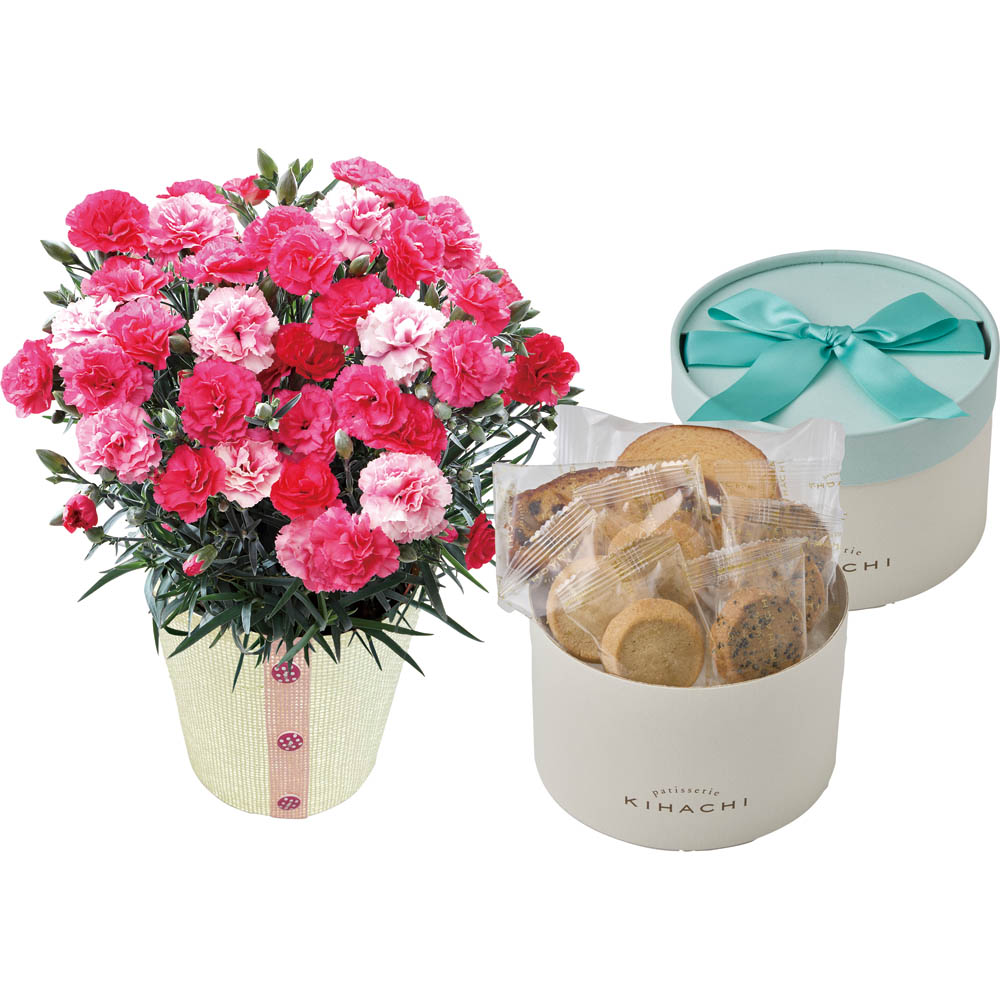 【母の日2026】カーネーション さくらもなか と パティスリー キハチ アソートBOX 花 スイーツ【送料込み】【二重包装不可】【お届け不可地域:離島】【お届け日時指定不可】_81007