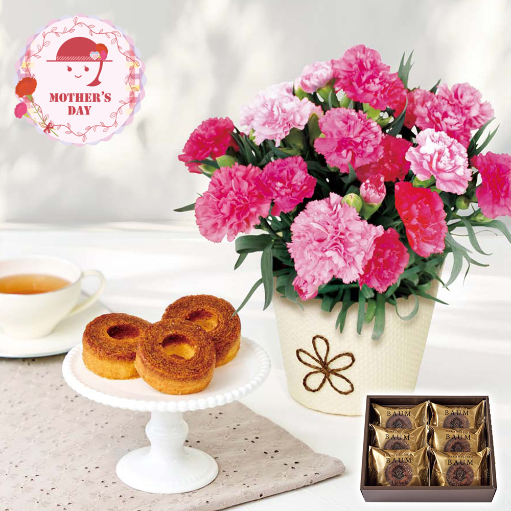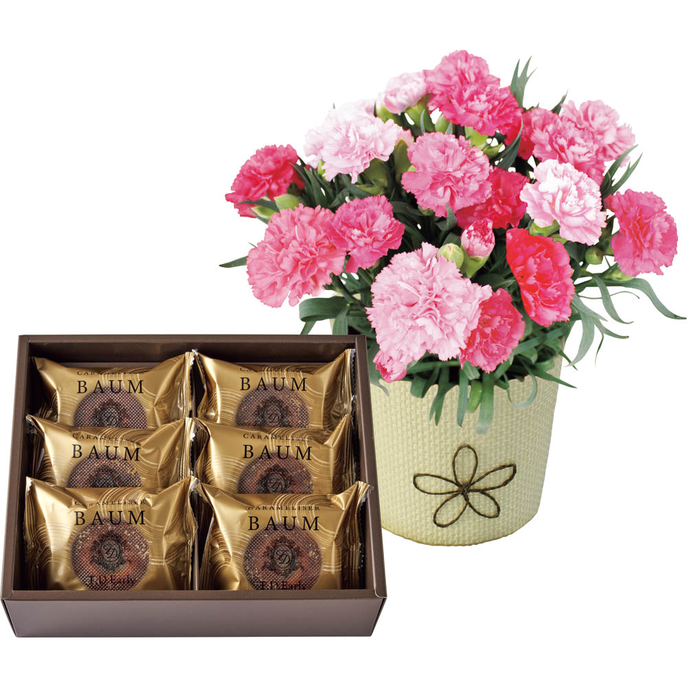 わが街とくさんネット TOP ≫ 花・ガーデニング ≫ 【母の日2026】カーネーション ホットハート とT.D.Early キャラメリゼバウム 花 スイーツ【送料込み】【二重包装不可】【お届け不可地域:離島】【お届け日時指定不可】_81003
