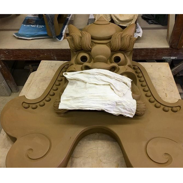 日本に瓦製造の技術が伝えられて千四百年あまり。その伝統を継承した「大和瓦」の技術を生かして作られる逸品です。鬼瓦は和式建築物の棟の端などに設置される厄除けと装飾を兼ねた役瓦のひとつです。鬼瓦には「鬼」を味方につければ、その形相で厄を払ってくれるという意味が込められています。