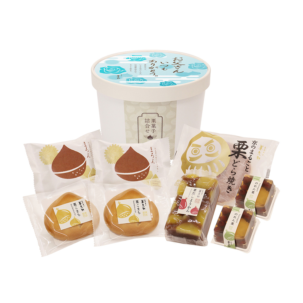 ■規格:栗どら焼き・栗蒸しようかん×各1、渋皮栗の焼きモンブラン・のれん栗・栗こまち×各2(計8)