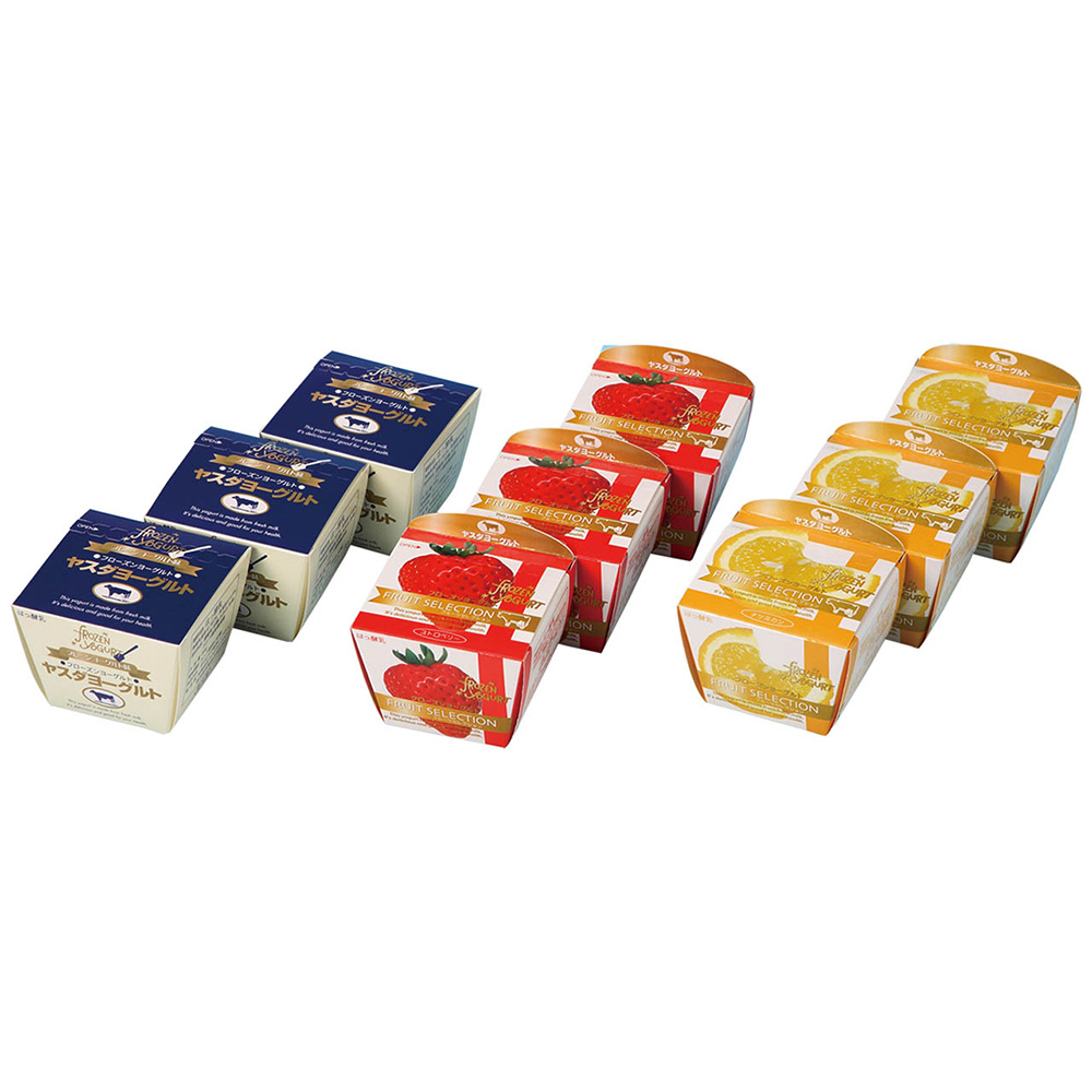 ■規格:フローズンヨーグルト(プレーン)、(ストロベリー)、(ナツミカン)各85g×各3