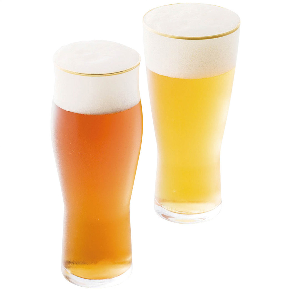 ■規格:直径7.7cm高さ16.3cm容量約410ml喉ごしビアグラス、直径6.4cm高さ17.3cm容量約390mlくちあたりビアグラス各1客、ガラス
