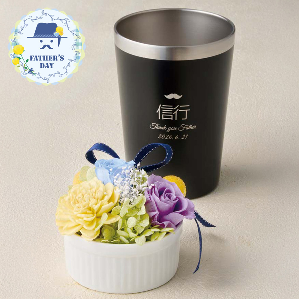 【父の日2026】プリザーブドフラワーとブラックステンレスタンブラー タンブラー 花【送料込み】【二重包装不可】【お届け不可地域:離島】【お届け日時指定不可】_91003