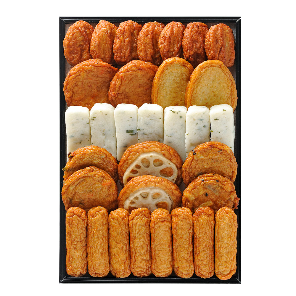 ■規格:棒天20g×8、ごぼう天18g・しそ棒天20g×各7、人参天40g・上揚30g・野菜天30g・れんこん揚45g・さつまいも天30g×各2