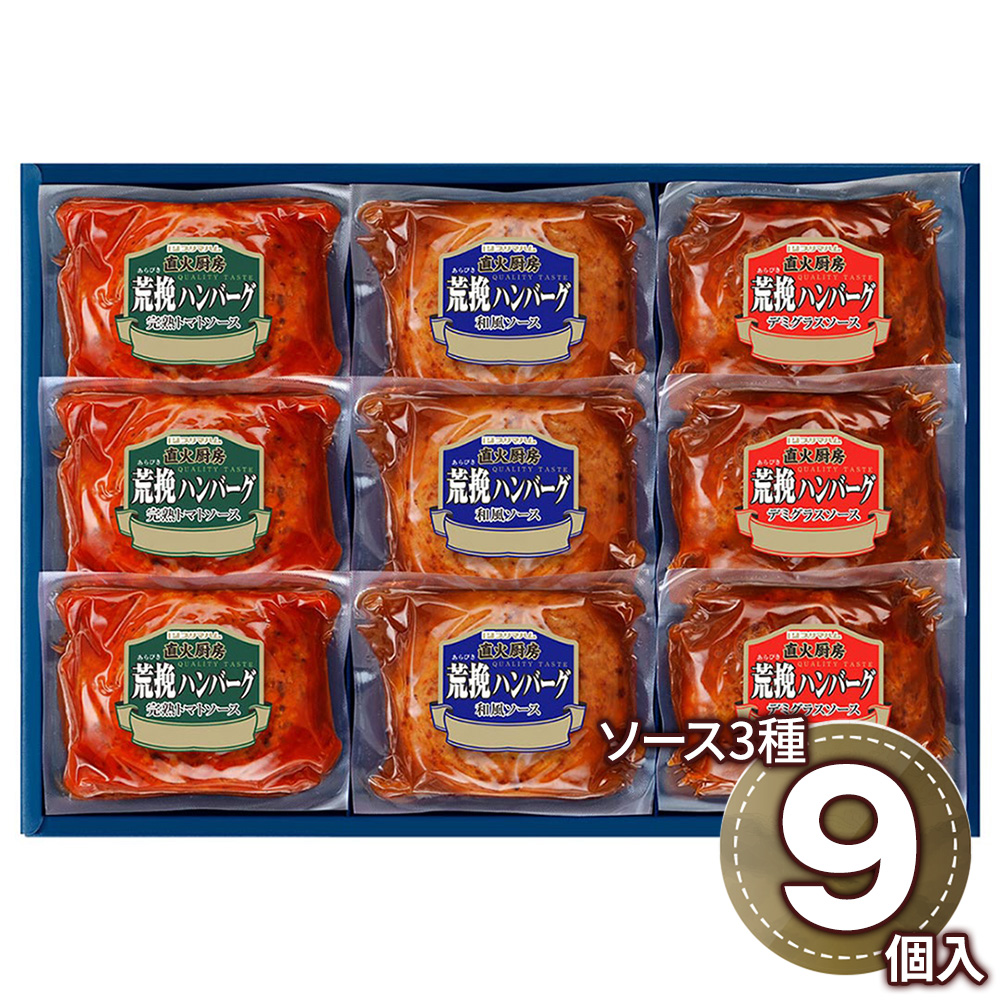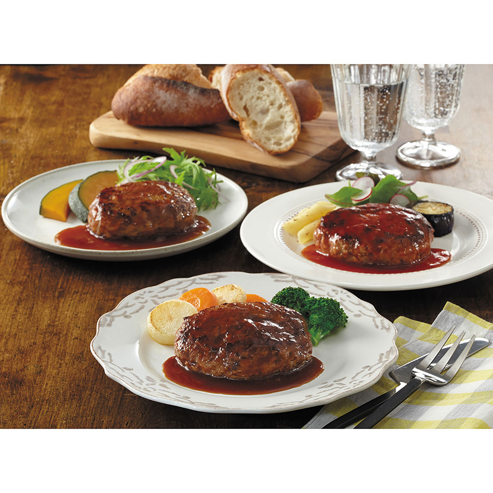 ■規格:荒挽ハンバーグ120g×9(デミグラスソース×3、和風ソース×3、完熟トマトソース×3)