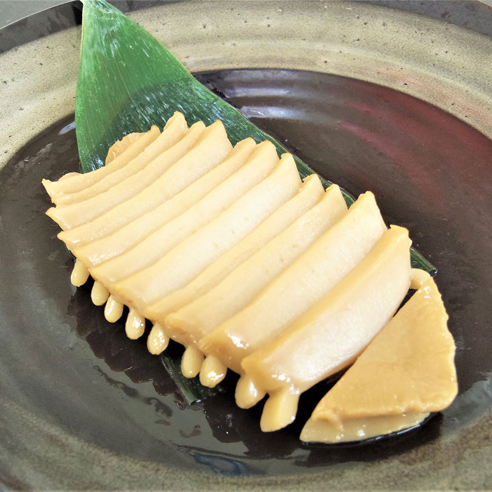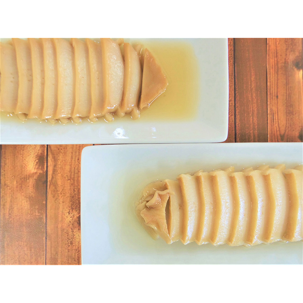 むき身にしたあわびを一粒ずつ丁寧に洗い、やわらかくふっくらと蒸し上げた後、煮貝にしました。むき身なので磯臭さが苦手な方にも召し上がりやすい一品です。お贈り物に適した桐箱入り。