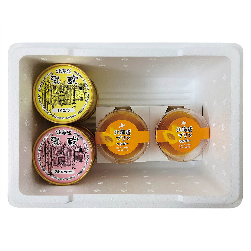 ■規格:乳蔵アイス(バニラ・ストロベリー)各80ml×2個、マンゴープリン100g×2