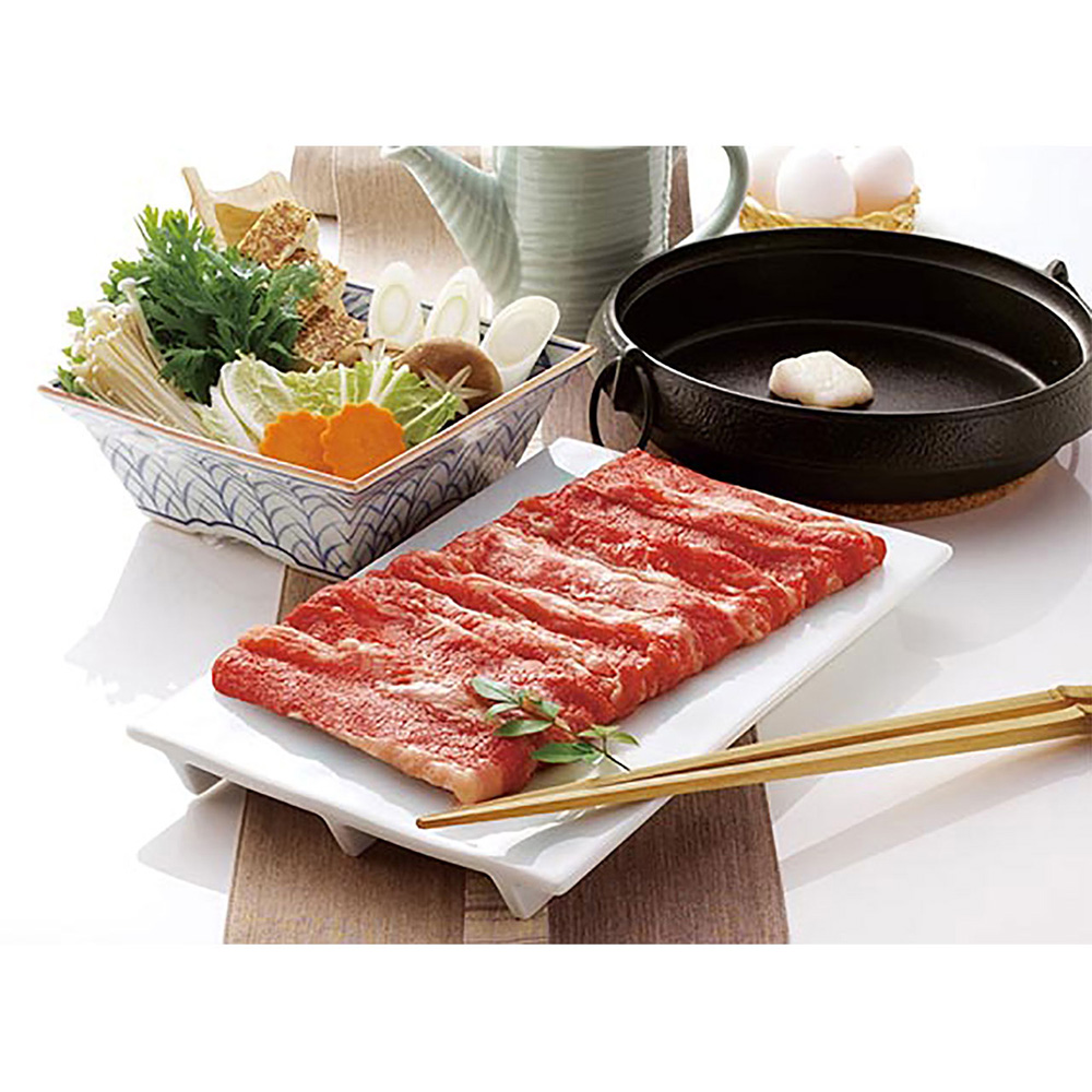 山形県の豊かな自然の中で育った米沢牛。きめが細かくコクのある美味しさを、お好みの野菜などをご用意の上、すきやきでご賞味ください。
