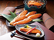 明太子用の調味液をベースにした漬けだれに、北海道産秋鮭の切身を丁寧に漬け込みました。弱火でじっくりと焼いてお召し上がりください。程よい辛さでご飯も進みます。