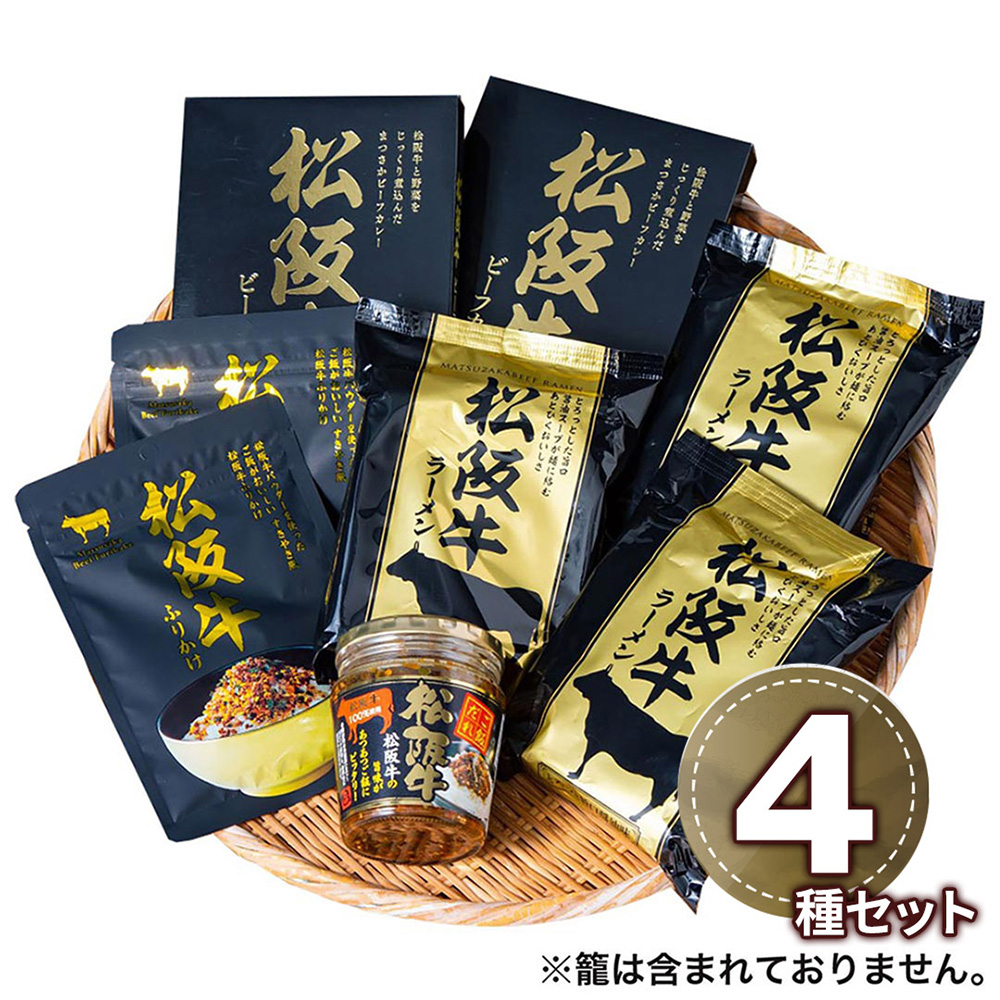 ■規格:松阪牛ラーメン91g×3、松阪牛ふりかけ30g×2、松坂牛ビーフカレー180g(パウチ)×2、松阪牛ご飯だれ200g×1