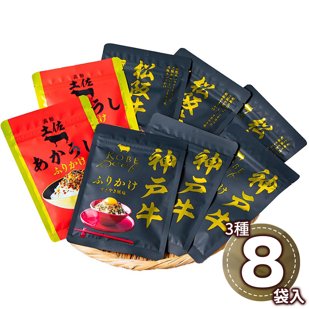 ■規格:和牛ふりかけ30g×8(神戸牛・松阪牛×各3、土佐あかうし×2)