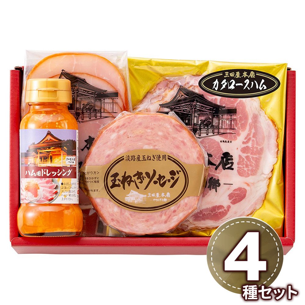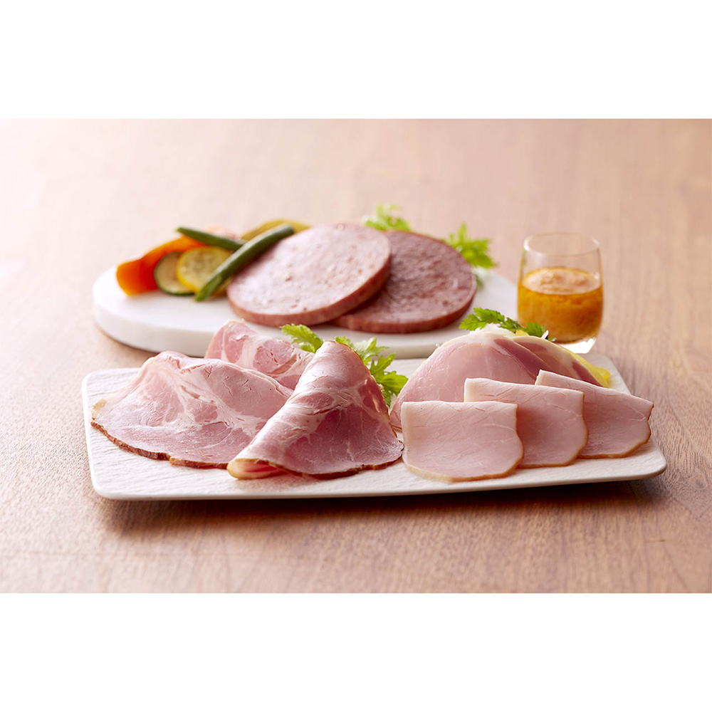 ■規格:ロースハムスライス60g、ハム用ドレッシング120ml、カタロースハム80g、玉ねぎソーセージ120g
