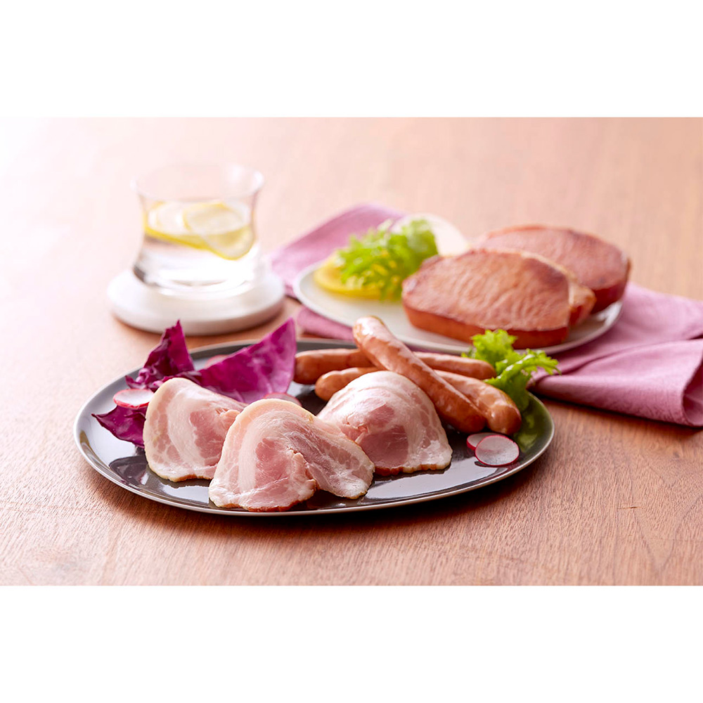 ■規格:サーロインハムステーキ120g×2、ベリーハムスライス60g×1、ポークソーセージ150g×1