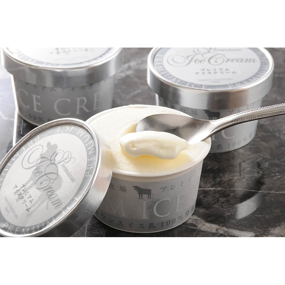 放牧にこだわった酪農家のみが手に入る放牧牛乳。その認証を受けた橋本牧場プレミアムアイス。希少価値のブラウンスイス種の生乳を使用した濃厚なプレミアムアイスをお楽しみください。