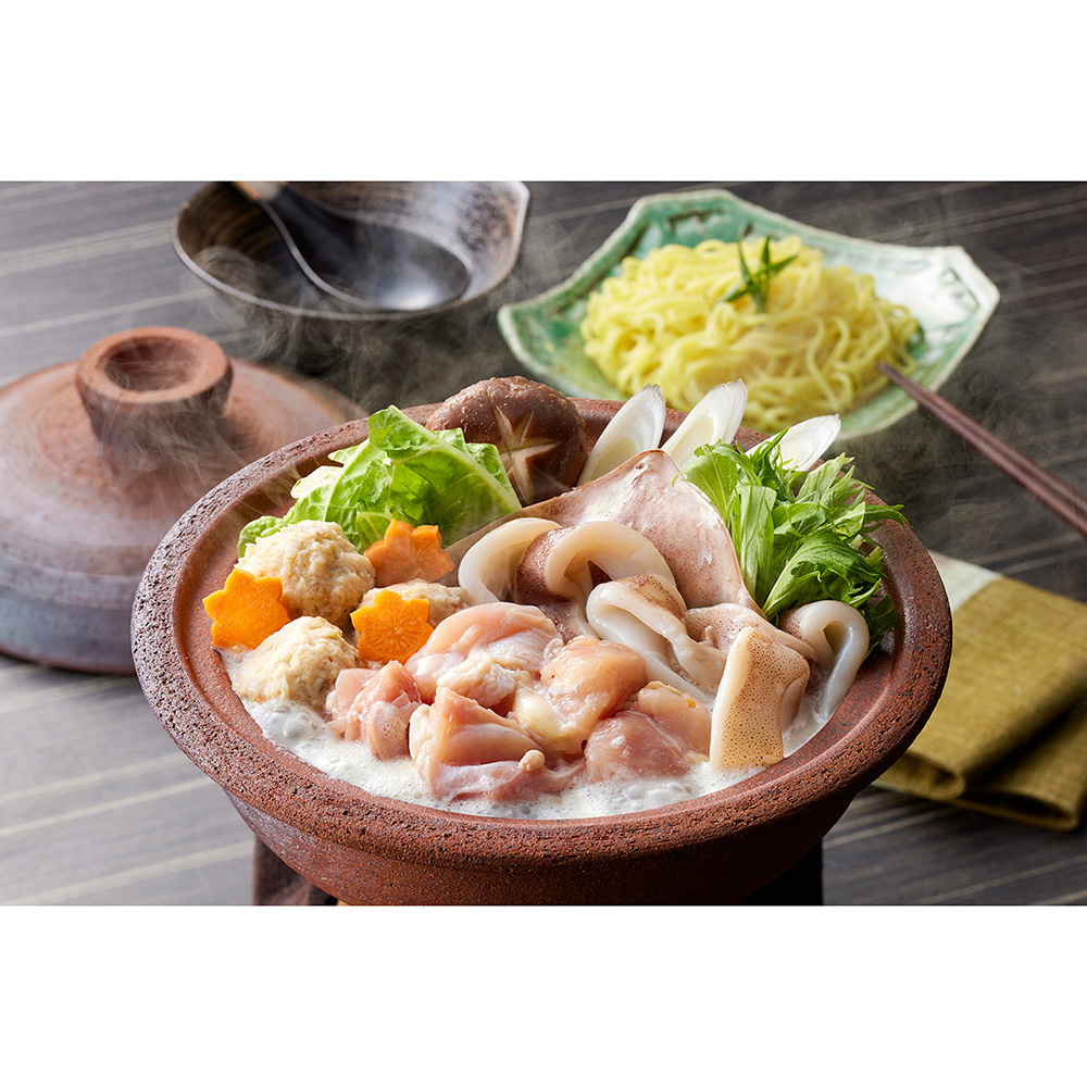 ■規格:個食用 鶏白湯鍋セット(鶏もも肉100g×1袋、ツボ抜きいか100g×1尾、とりごぼうつみれ20g×3個、冷凍生ラーメン80g×1玉、たれ(濃縮:白湯)50ml×2袋 ※1~2人前) ×2
