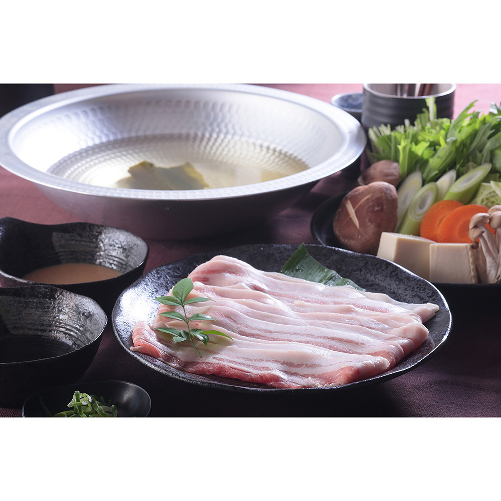 鹿児島県産の黒豚バラ肉のしゃぶしゃぶ用スライスです。鹿児島県産の黒豚は甘みのある柔らかな肉質でさっぱりとした脂と肉の旨みが味わえます。