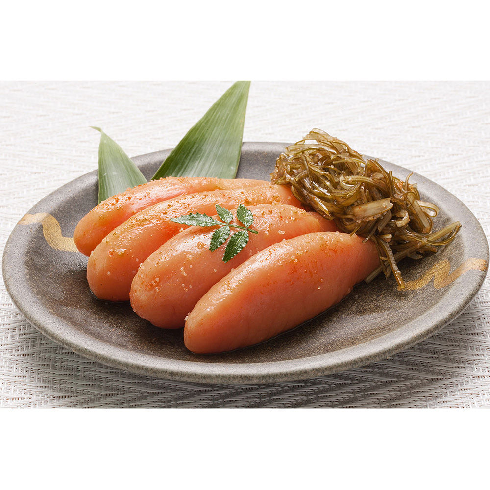 昆布に携わること三十余年の社長が、創意工夫を凝らし誕生させた昆布が主役の辛子明太子、『味の筑前 昆布漬辛子明太子(無着色)』。幾重にも選別したたらこを、北海道産昆布の旨味を存分に引き出した調味液にじっくり漬け込み熟成させることによって、辛子明太子にまろやかな味わいが生まれます。また、明太子に添えられる昆布にも、ピリッと引き締まった辛味が加わり、互いの素材を存分に引き出しあった辛子明太子に仕上がっています。辛いだけではない、一味違った風味を本場博多よりお届けします。