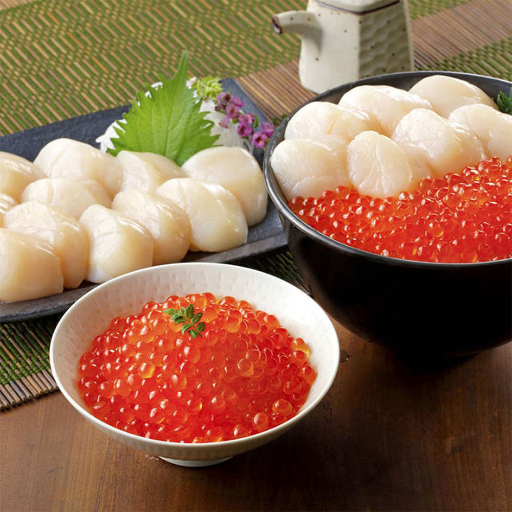 ■規格:お刺身ほたて貝柱150g・いくら醤油漬70g