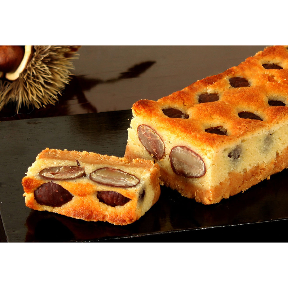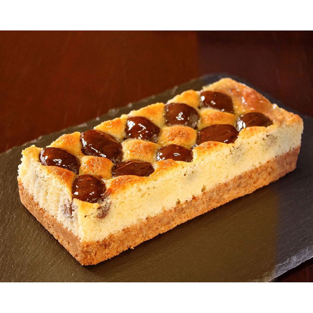 甘味があり、大きく風味の良い渋皮栗を贅沢に使用した極上の焼き菓子です。バターの風味よく焼き上げたクッキーにアーモンドとほんのりラム酒が香るダマンド生地を重ね、表面には大粒の栗を敷き詰め、じっくりと香ばしく焼き上げました。