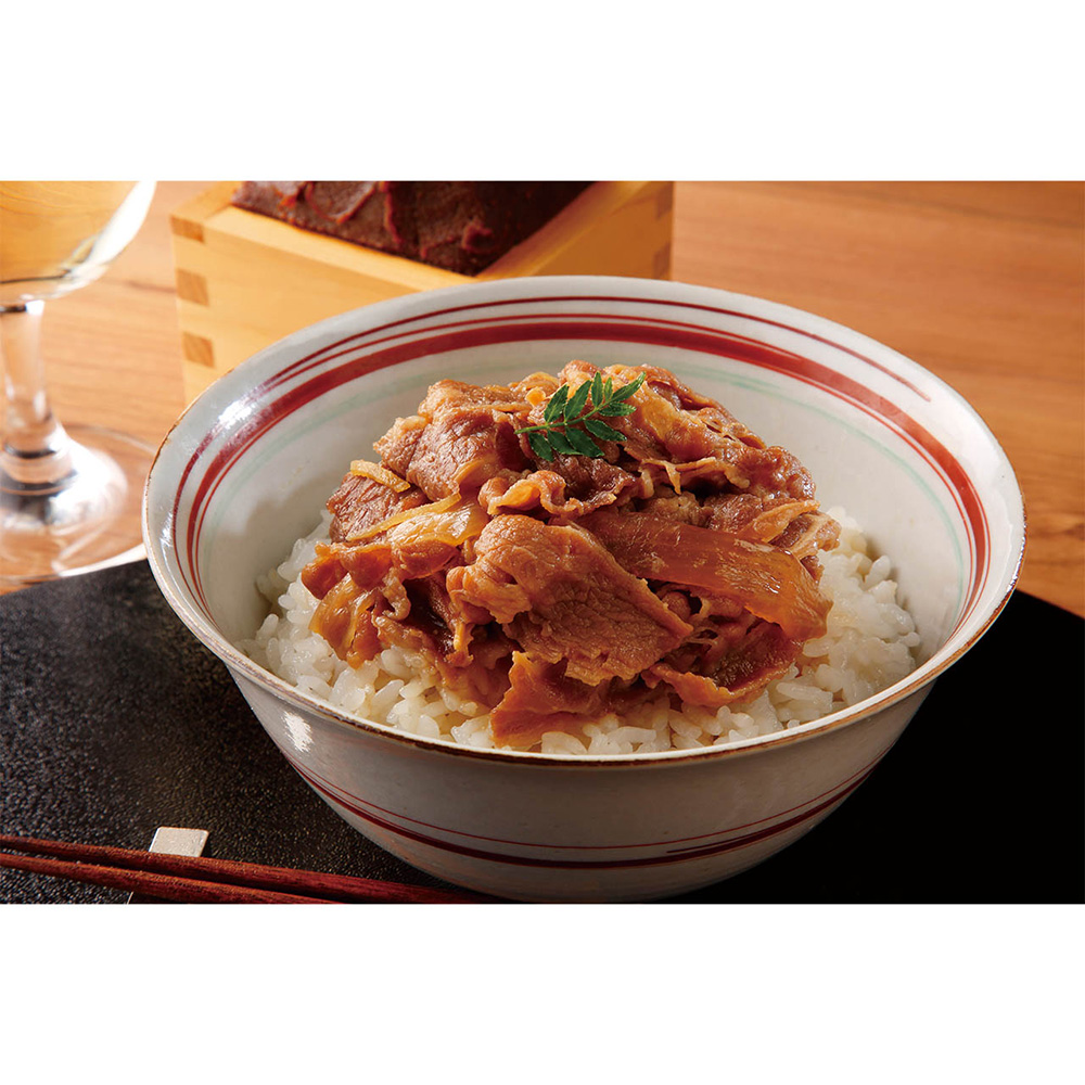 口いっぱいに広がるお肉と玉ねぎの甘みと旨味。白ワインで肉の旨味と柔らかさを引き出し、隠し味に味噌でコクを出した、吉岡料理人の牛丼です。お肉は適度に脂身が入った部位を使用し、本来の旨味を楽しめるようカット。一袋でご飯をしっかり楽しめるよう、玉ねぎの量とお肉のバランスにもこだわりました。簡単便利なこだわりのお味をご家庭でお楽しみいただけます。また常温保存が可能ですので、保管にも大変便利です。