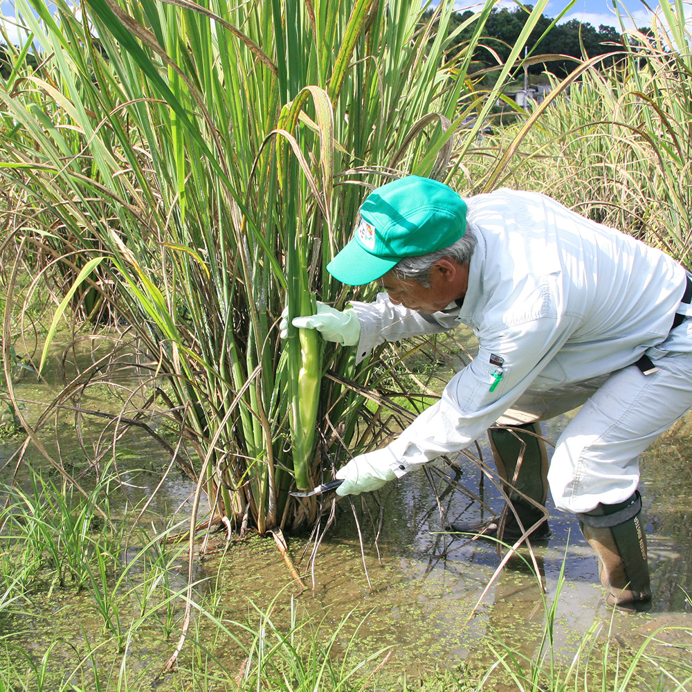 ※マコモタケの収穫後期になりますと、黒いゴマのような点「マコモ墨」が見られることもございますが、黒穂菌(くろぼきん)と言い無味無臭で無害であり、お召し上がりいただいても問題ございません。