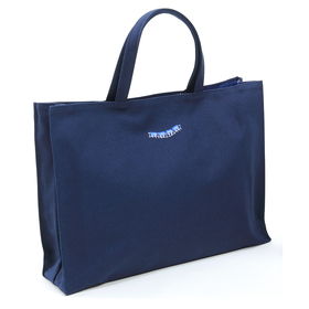 丈夫な帆布で作り上げました。男の子が大好きな電車刺繍。パパにも人気です。