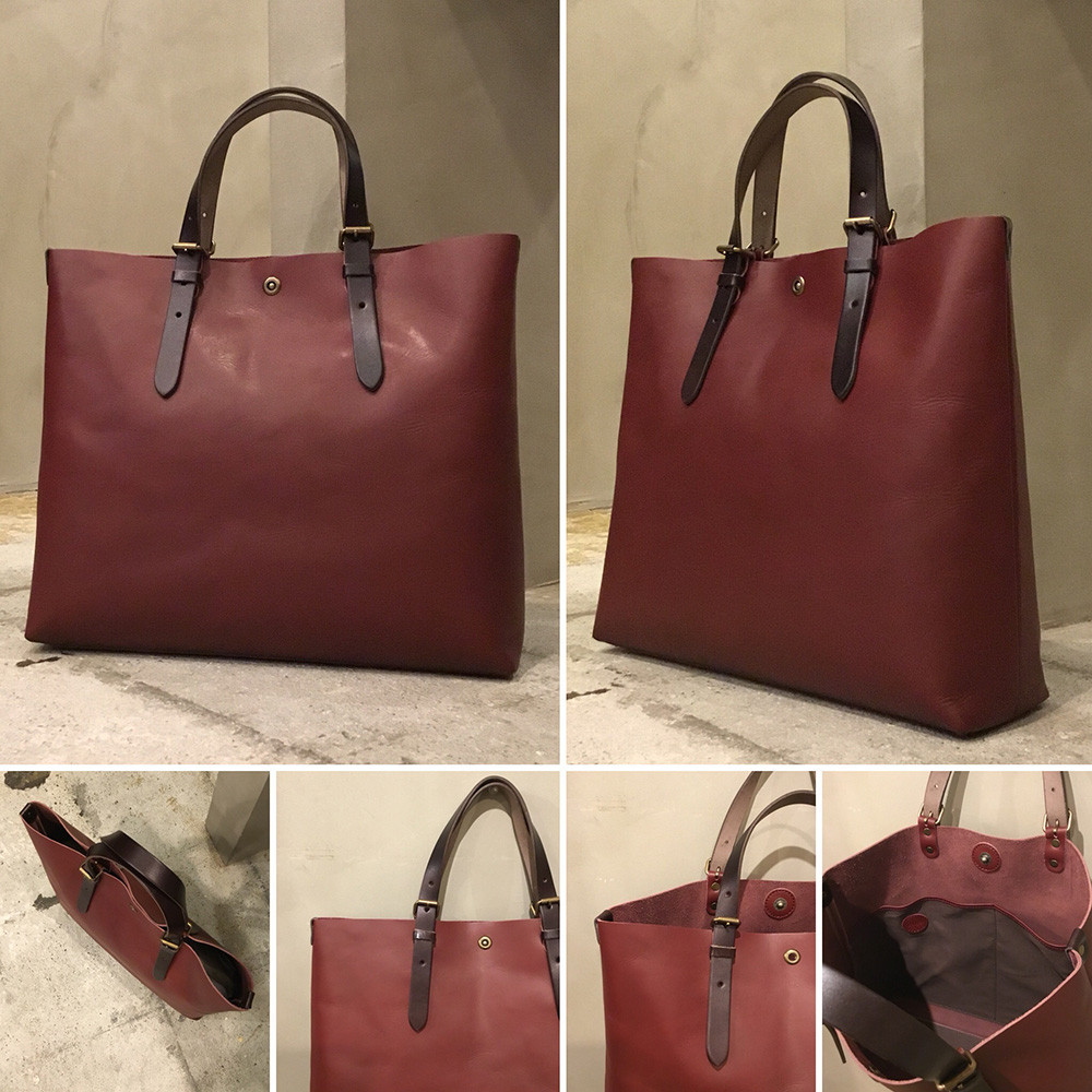 男女問わず、シーンを選ばずご使用いただけます。B4書類サイズまで対応しており、A4サイズが横にも縦にも収納可能。雑誌から500mlペットボトルまで沢山入ります。ハンドルは4段階に長さを変更可能。一見、シンプルなデザインですが、見た目や機能を踏まえ、細かいバランスを考え抜いて作りました。金属パーツがひとつ無いだけでも全く雰囲気が変わります。ホックを隠して見てもらえれば違いが分かるかと思います。本体を横長ではなく正方形っぽくする事で、カジュアル感が落ち着きスタイリッシュなイメージに。他ではあまり無い差別化したものを作りたいという思いもあり考えたバランスです。荷物が入るスペースはホックから下なので、高さを出す事で容量もアップします。定番として大変人気の高いバッグです。