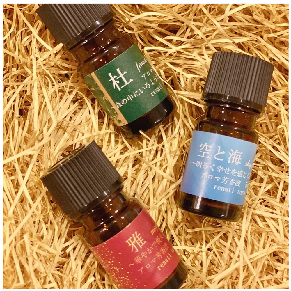 ■アロマオイル:杜・空と海・雅の3種類からお選び下さい。