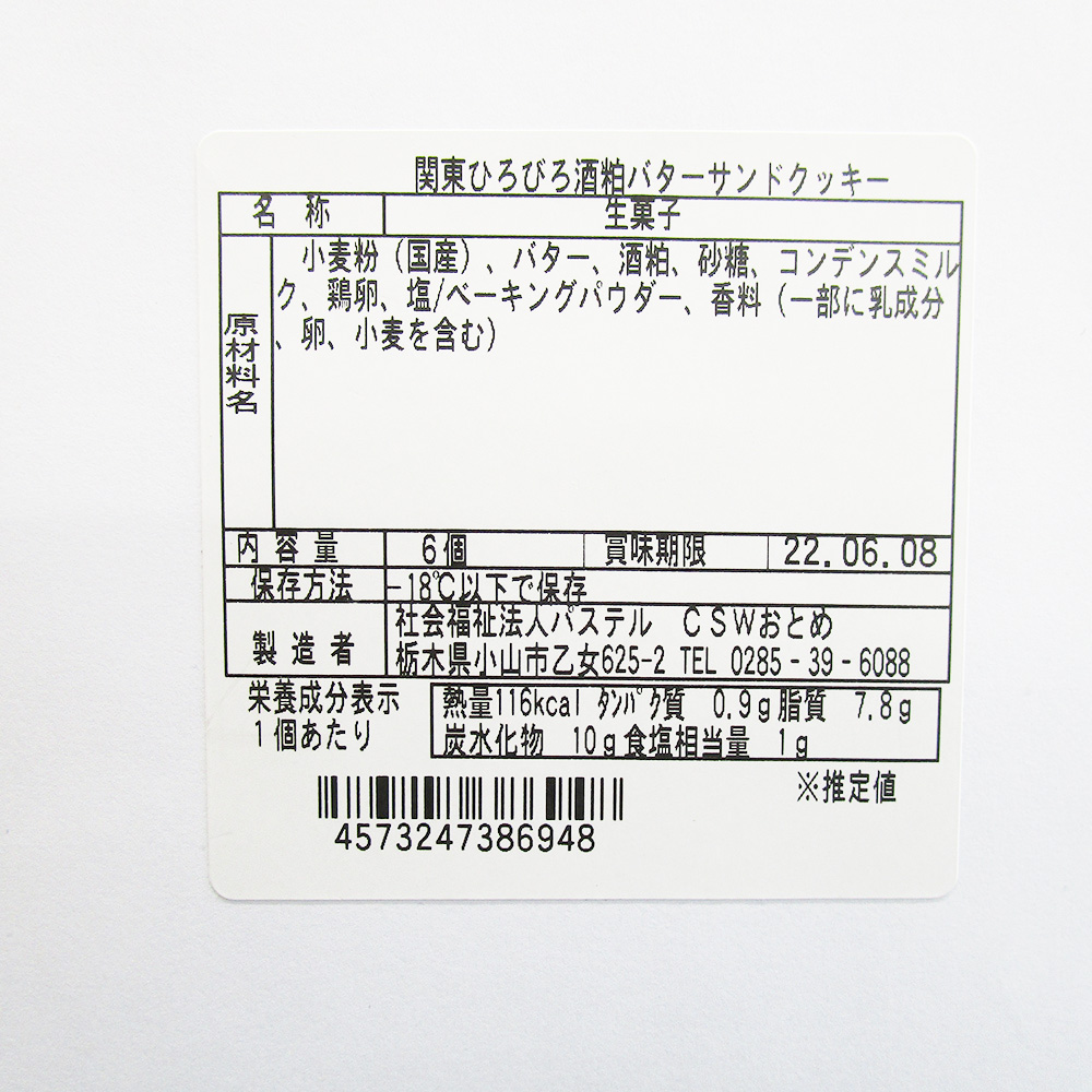 酒粕バターサンドクッキー(6個入箱)【送料込み】【とちぎのいいもの物産展】