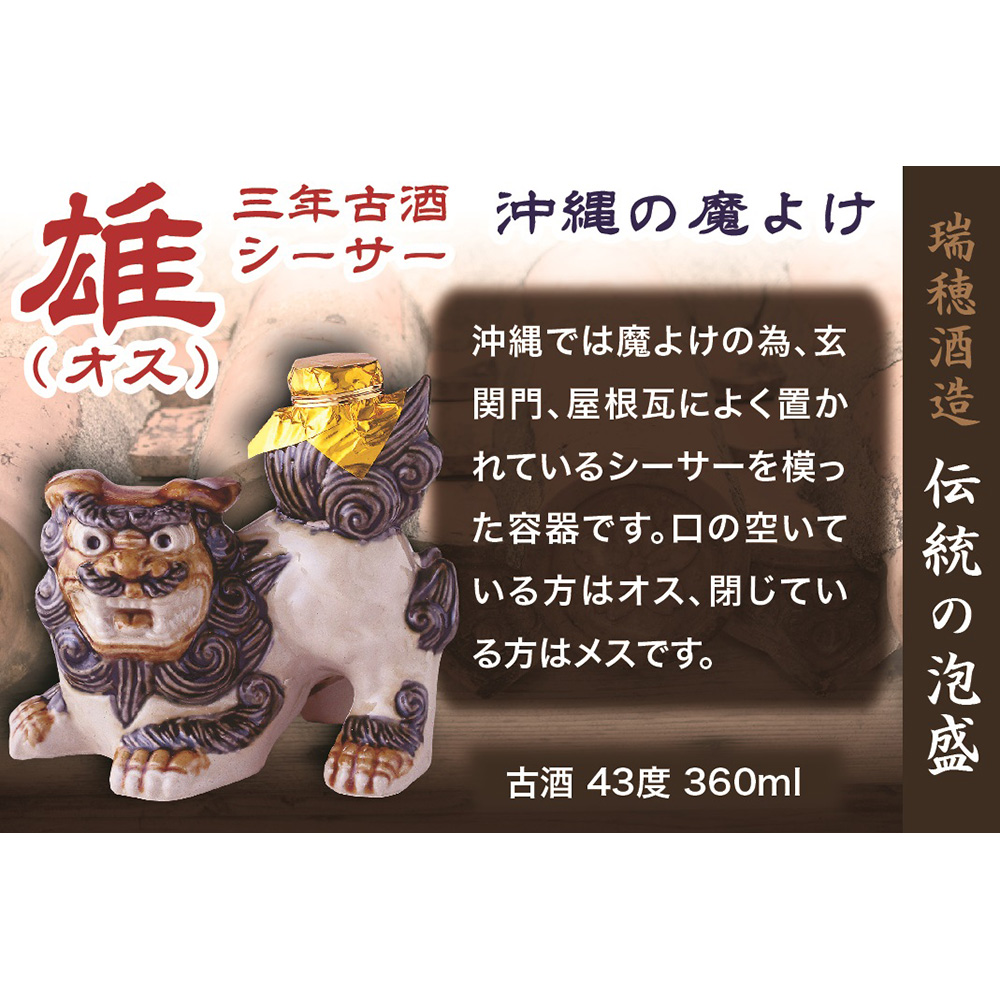 琉球泡盛 瑞穂 シーサー(オス) 熟成3年古酒 43度 360ml【送料込み】