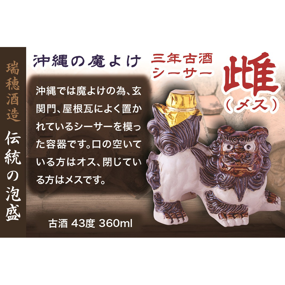 琉球泡盛 瑞穂 シーサー(メス) 熟成3年古酒 43度 360ml【送料込み】
