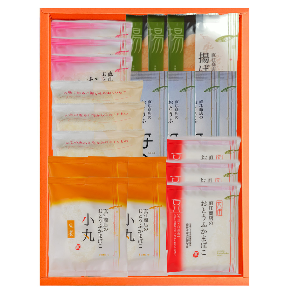 美味しく、食べやすく、ヘルシーな食品をお届けしたい。そんな願いから生まれたのが『おとうふかまぼこ』です。食卓に健康と美味しさをお届けするため常に進歩をめざし、日々努力を続けております。笑顔あふれる食卓へ。直江のおいしさでお手伝いいたします。贈り物にもぜひご利用ください。