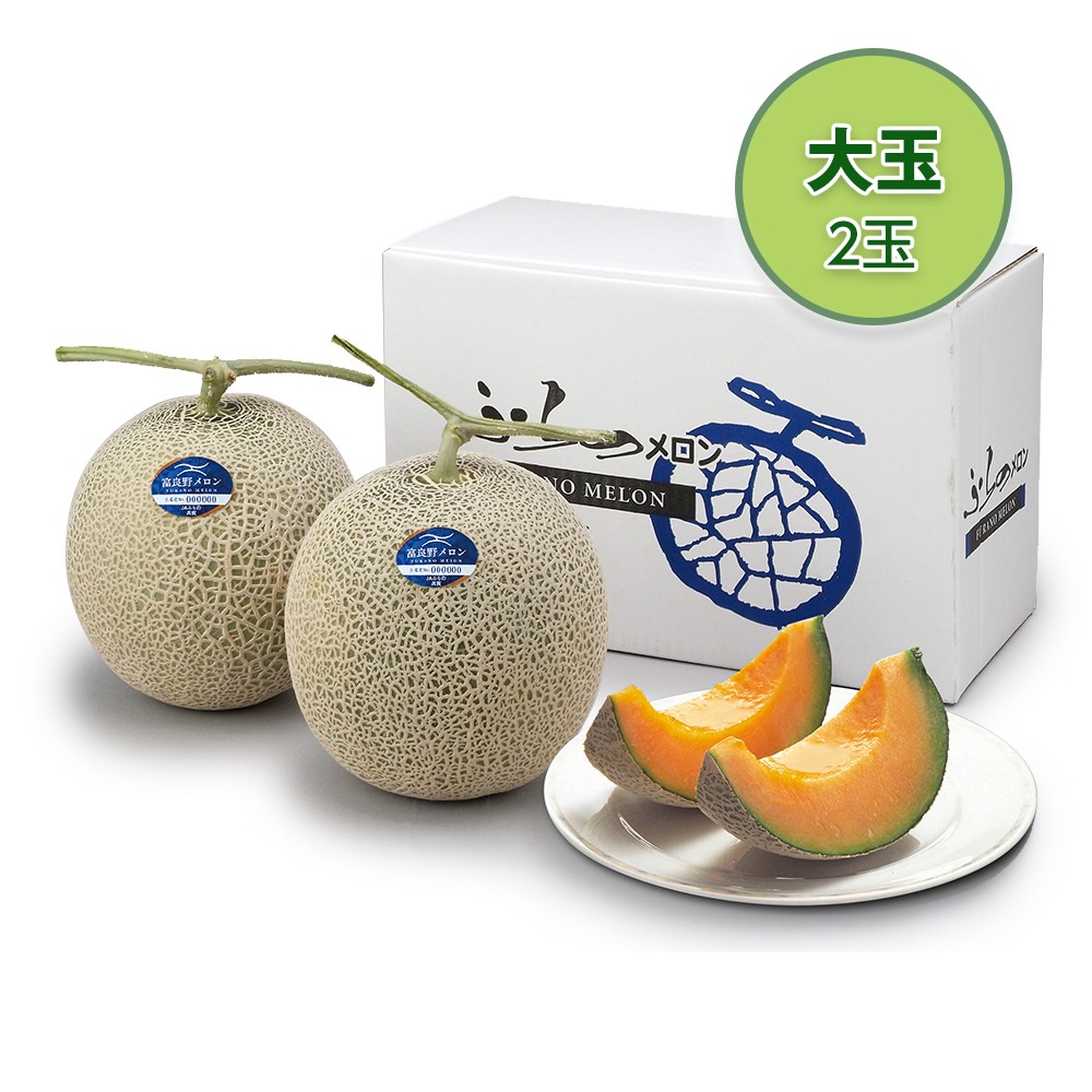 富良野メロン 大玉 2玉【送料込み】【二重包装不可】【お届け日指定不可】【お届け不可地域:沖縄・離島】