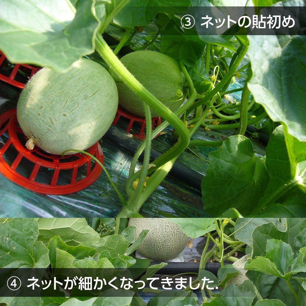 ■備考:メロンの保管状況によって過熟が変わるため食べごろが異なります。メロンのツルが枯れて、メロンのお尻に弾力が感じたら食べごろです。