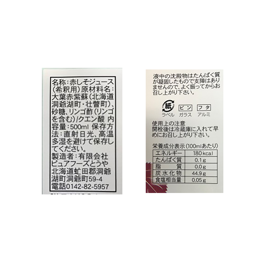 ■原材料名:大葉赤紫蘇(北海道洞爺湖町・壮瞥町)、砂糖(北海道)、リンゴ酢/クエン酸