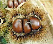 全国でも有数の栗の生産地として知られており、日本一の栽培面積を誇ります。大粒で甘味の強い生栗はもちろんのこと、栗菓子やジャムをはじめとする加工品や、市内のレストランでは栗料理が提供されています。毎年10月には、「かさま新栗まつり」を開催。多くの来場者で盛り上がります。