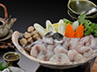 とらふくの身とアラを豪快にブツ切りにし、ふくちり鍋用にしました。さらに、とらふくの希少部位である生白子もセットにしています。とらふくの持つ様々な味・香り・食感を存分にお楽しみください。